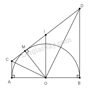 Cho nửa đường tròn (O; R) đường kính AB. Kẻ các tiếp tuyến tại A và B với nửa đường tròn. Qua điểm M thuộc nửa đường tròn (M khác A và B) kẻ tiếp tuyến thứ ba cắt các tiếp tuyến tại A và B lần lượt tại C và D.