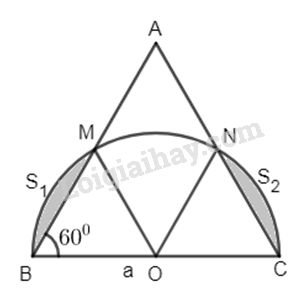Cho ∆ABC đều cạnh A, trên nửa mặt phẳng bờ BC chứa điểm A, vẽ nửa đường tròn đường kính BC. Hãy tính diện tích phần hình tròn nằm ngoài ở miền ngoài của tam giác.