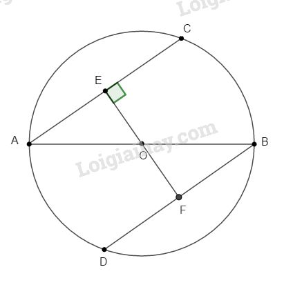 \(⇒ AC = BD\) (định lí dây cung và khoảng cách đến tâm).