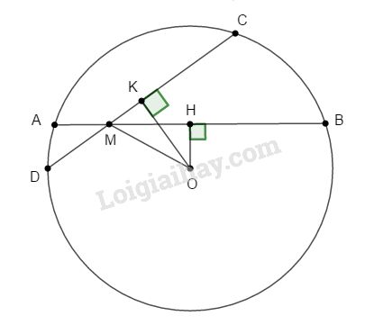 \(HM = \sqrt {O{M^2} – O{H^2}}\)\(\;  = \sqrt {O{M^2} – O{H^2}} \) (định lí Pi-ta-go)