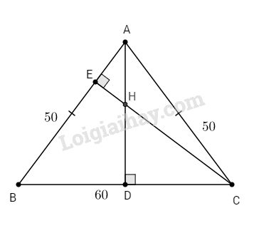 Cho \(∆ABC\) cân tại A có \(AB = AC = 50cm, BC = 60cm\). Các đường cao AD và CE cắt nhau tại H. Tính CH.