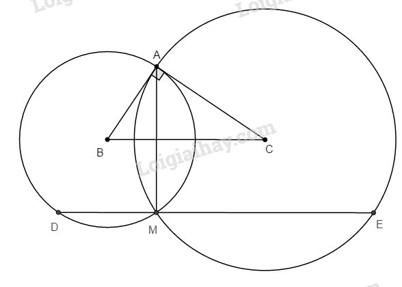 b. AB cắt đường tròn (B) tại D và AC cắt đường tròn (C) tại E. Chứng minh rằng ba điểm D, M, E thẳng hàng (M là giao điểm thứ hai của hai đường tròn).