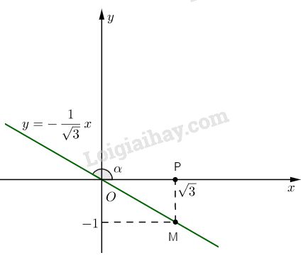 Đường thẳng \(y =  – {1 \over {\sqrt 3 }}x\) qua hai điểm O(0; 0) và \(M\left( {\sqrt 3 ; – 1} \right)\)