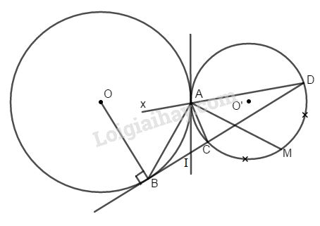 Từ (1) và (2) : \(\widehat {IAC} + \widehat {IAB} = \widehat {ADC} + \widehat {IBA} = \widehat {BAx}\) ( \(\widehat {BAx}\) là góc ngoài của \(∆BAD\)) hay \(\widehat {BAC} = \widehat {{\rm{BAx}}}\), chứng tỏ AB là phân giác của \(\widehat {{\rm{IAx}}}\).