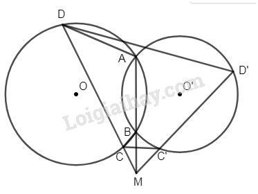 Cho hai đường tròn (O) và (O’) cắt nhau tại hai điểm A và B. Gọi M là điểm tùy ý trên đường thẳng AB, nằm ngoài đoạn AB. Vẽ qua M hai cát tuyến MCD và MC’D’ với (O) và (O’). Chứng minh tứ giác CDD’C’ nội tiếp.