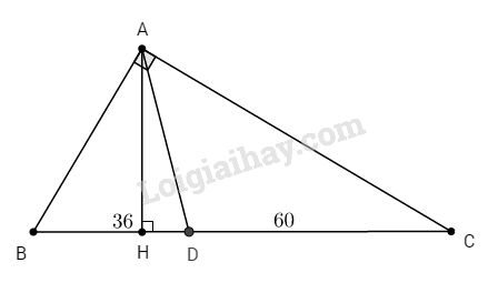Cho ∆ABC vuông tại A. Đường phân giác AD chia cạnh BC thành hai đoạn \(BD = 36cm\) và \(CD = 60cm\). Kẻ đường cao AH của tam giác .