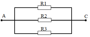 Câu 6. Cho ba điện trở R= 30Ω, R2 = 20Ω , R3 = 12Ω được mắc song song với nhau như sơ đồ hình bên thì điện trở tương đương RAC của mạch là