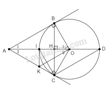 mà \(\widehat {BAO} = \widehat {KAO}\) (tính chất hai tiếp tuyến cắt nhau)