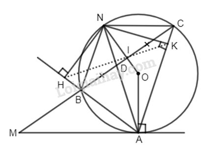 Mặt khác tứ giác NIKC nội tiếp ( \(\widehat {NIC} = \widehat {NKC} = 90^\circ \))