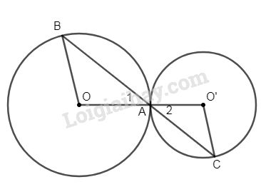 Bài 2: Cho đường tròn (O; R) và (O’; R’) tiếp xúc ngoài nhau tại A. Qua A vẽ đường thẳng cắt (O) tại B và cắt (O’) tại C.