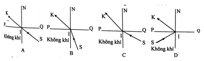 Câu 12. Khi 1 tia sáng đi từ không khí tới mặt phân cách giữa không khí và nước thì có thể xảy ra hiện tượng nào dưới đây?