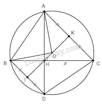 \(BD = R\). Gọi \(IK\) là trục đối xứng của hình thang cân ABDC, ta có :