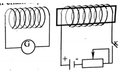 Câu 2. Trong các hình vẽ sau đây dùng nam châm điện để tại ra dòng điện cảm ứng (hình vẽ), cách nào đúng?