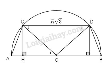 Cho nửa đường tròn (O; R) đường kính AB. Vẽ dây CD sao cho CD //AB và \(CD = R\sqrt 3 \).