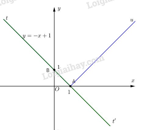 + Lấy đối xứng tia At’ qua trục hoành, ta được đồ thị của hàm số \( y = \left| { – x + 1} \right|\)  là đường gấp khúc tAu.