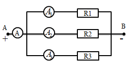 Từ công thức  I = I1+ I2 + I3  cường độ dòng điện qua ampe kế A3 là: