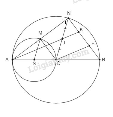 c. Dễ thấy \(\widehat {AMO} = \widehat {ANB} = 90^\circ \) (góc chắn nửa đường tròn)