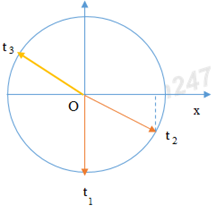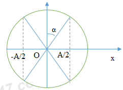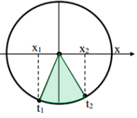 Từ VTLG ta có: \({t_2} – {t_1} = \frac{1}{\omega }\left( {\arcsin \frac{{{x_1}}}{A} + \arcsin \frac{{{x_2}}}{A}} \right) = 0,1s\)