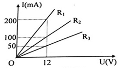 Từ đồ thị ứng với hiệu điện thế U = 12V ta có: \(\left\{ {\begin{array}{*{20}{l}}{{I_1} = 200mA = 0,2A}\\{{I_2} = 100mA = 0,1A}\\{{I_3} = 50mA = 0,05A}\end{array}} \right.\)