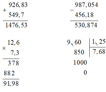 Đặt tính rồi tính theo các quy tắc đã học về phép cộng, trừ, nhân, chia số thập phân.
