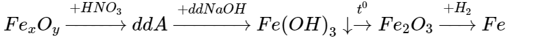 Câu 15 : Hòa tan hết 34,8 gam FexOy bằng dung dịch HNO3 loãng, thu được dung dịch A. Cho dung dịch NaOH dư vào dung dịch A. Kết tủa thu được đem nung ở nhiệt độ cao cho đến khối lượng không đổi. Dùng H2 dư để khử hết lượng oxit tạo thành sau khi nung, thu được 25,2 gam chất rắn. FexOy là