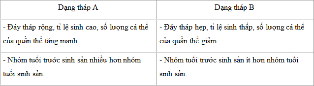 Câu 13. Biểu đồ sau đây biểu diễn các dạng tháp tuổi của quần thể sinh vật: