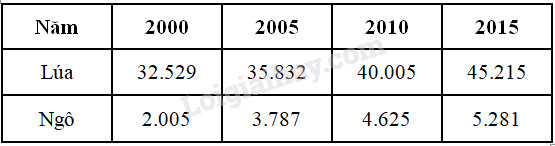 Câu 15: Cho bảng số liệu: Sản lượng lúa và ngô của nước ta giai đoạn 2000-2015 (Đơn vị: nghìn tấn)