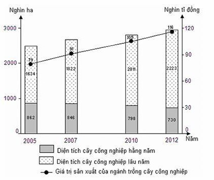 D. Diện tích cây công nghiệp hằng năm nhiều hơn cây lâu năm.