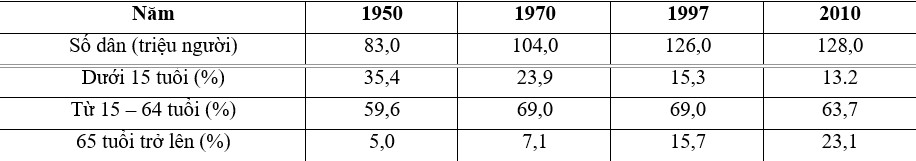 Câu 48: Cho bảng số liệu sau: Xu hướng biến động dân số Nhật Bản thời kỳ 1950 -2010
