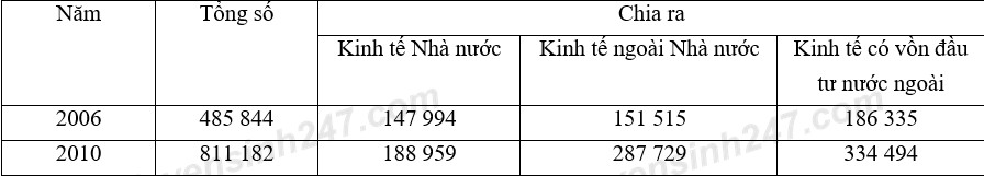 Nhận xét nào sau đây sai khi nói về quy mô giá trị sản xuất công nghiệp và cơ cấu phân theo thành phần kinh tế nước ta năm 2006 và năm 2010?