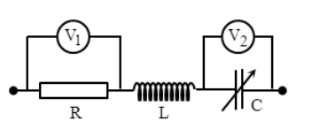 Câu 40: Đặt điện áp u = U0cos(ωt + φ) vào hai đầu đoạn mạch RLC như hình vẽ: cuộn cảm thuần có độ tự cảm L, điện dung C của tụ điện có giá trị thay đổi đượC. Điều chỉnh giá trị của điện dung C thì thấy: ở cùng thời điểm, số chỉ của vôn kế V1 cực đại thì số chỉ của vôn kế V1 gấp đôi số chỉ của vôn kế V2. Khi số chỉ của vôn kế V2 cực đại thì tỉ số giữa số chỉ của vôn kế V2 với số chỉ của vôn kế V1 bằng
