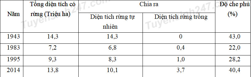 Câu 40: Biểu hiện nào sau đây chứng tỏ mặc dù tổng diện tích rừng của nước ta đang tăng lên nhưng chất lượng rừng vẫn bị suy thoái