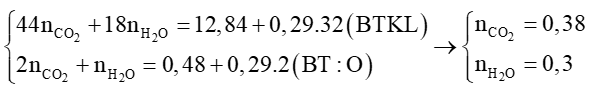 + Bảo toàn O: 6nX + 2nO2 = 2nCO2 + nH2O ⇔ 6x + 2.0,77 = 2y + 0,5 (1)