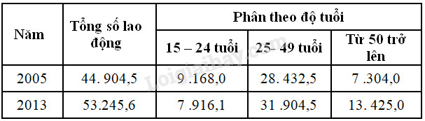 D. Lực lượng lao động trong độ tuổi từ 15 trở lên phân theo nhóm tuổi ở nước ta năm 2005, 2013 có sự thay đổi.