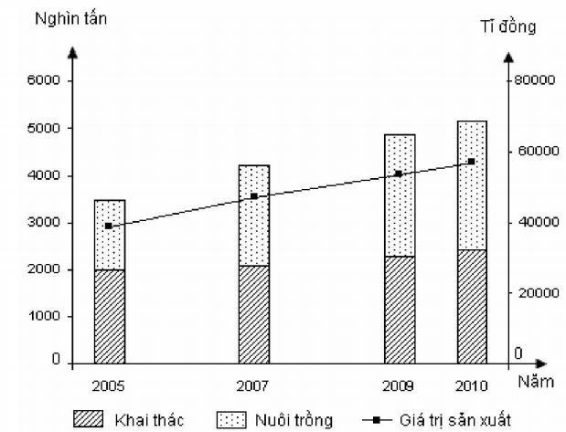 D. Sự chuyển dịch cơ cấu sản lượng và giá trị sản xuất thuỷ sản trong giai đoạn 2005 – 2010.
