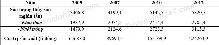 Nhận định nào sau đây không đúng về tình hình sản xuất thủy sản nước ta giai đoạn 2005 – 2012?
