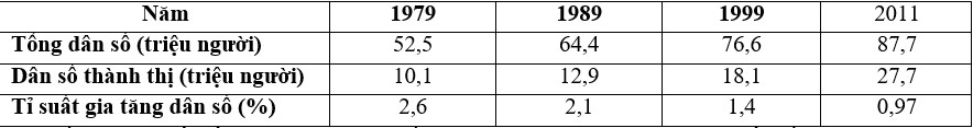 Câu 79. Cho bảng số liệu: