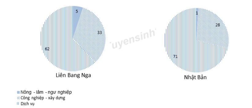 D. Cơ cấu kinh tế theo ngành của Liên Bang Nga và Nhật Bản.