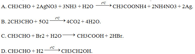 Câu 36. Anđehit axetic thể hiện tính oxi hoá trong phản ứng nào sau đây?