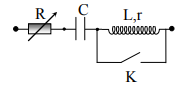 Đặt một điện áp xoay chiều có giá trị hiệu dụng và tần số không đổi vào hai đầu một đoạn mạch như hình vẽ. Khi K đóng, điều chỉnh giá trị biến trở đến giá trị R1 hoặc R2 thì công suất tỏa nhiệt trên mạch đều bằng P. Độ lệch pha giữa điện áp tức thời hai đầu mạch và dòng điện trong mạch khi R = R1 là j1, khi R = R2 là j2, trong đó \(\left| {{\varphi _1} – {\varphi _2}} \right| = \dfrac{\pi }{6}\). Khi K mở, điều chỉnh giá trị R từ 0 đến rất lớn thì công suất tỏa nhiệt trên biến trở R cực đại bằng 2P/3, công suất trên cả mạch cực đại bằng \(\dfrac{{2P}}{{\sqrt 3 }}\). Hệ số công suất của cuộn dây là