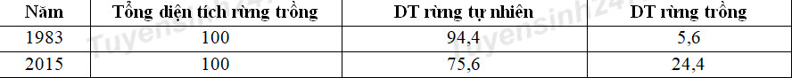 Cơ cấu diện tích rừng tự nhiên và rừng trồng trong tổng diện tích rừng của nước ta qua hai năm