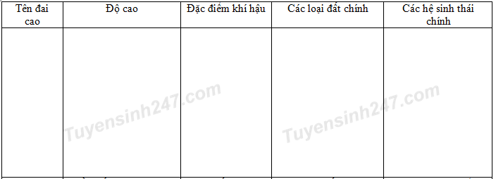 Xem lại lý thuyết phần Thiên nhiên phân hóa theo độ cao.