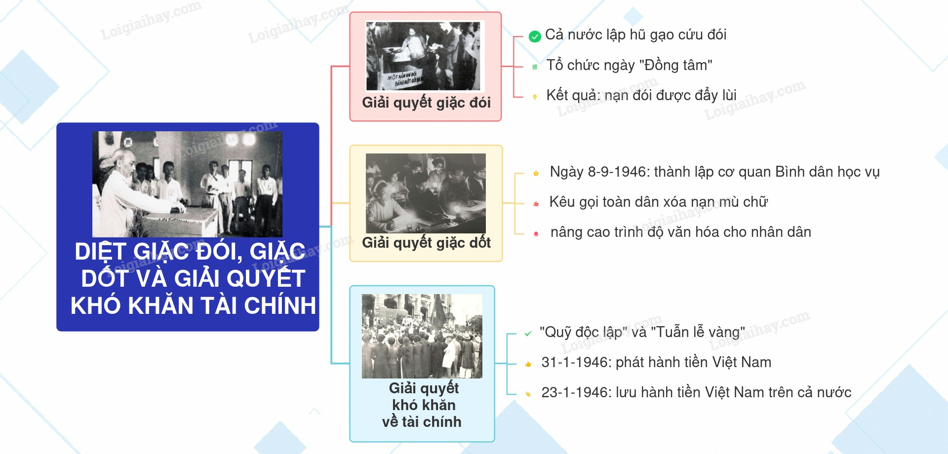 Sơ đồ tư duy Diệt giặc đói, giặc dốt và giải quyết khó khăn về tài chính
