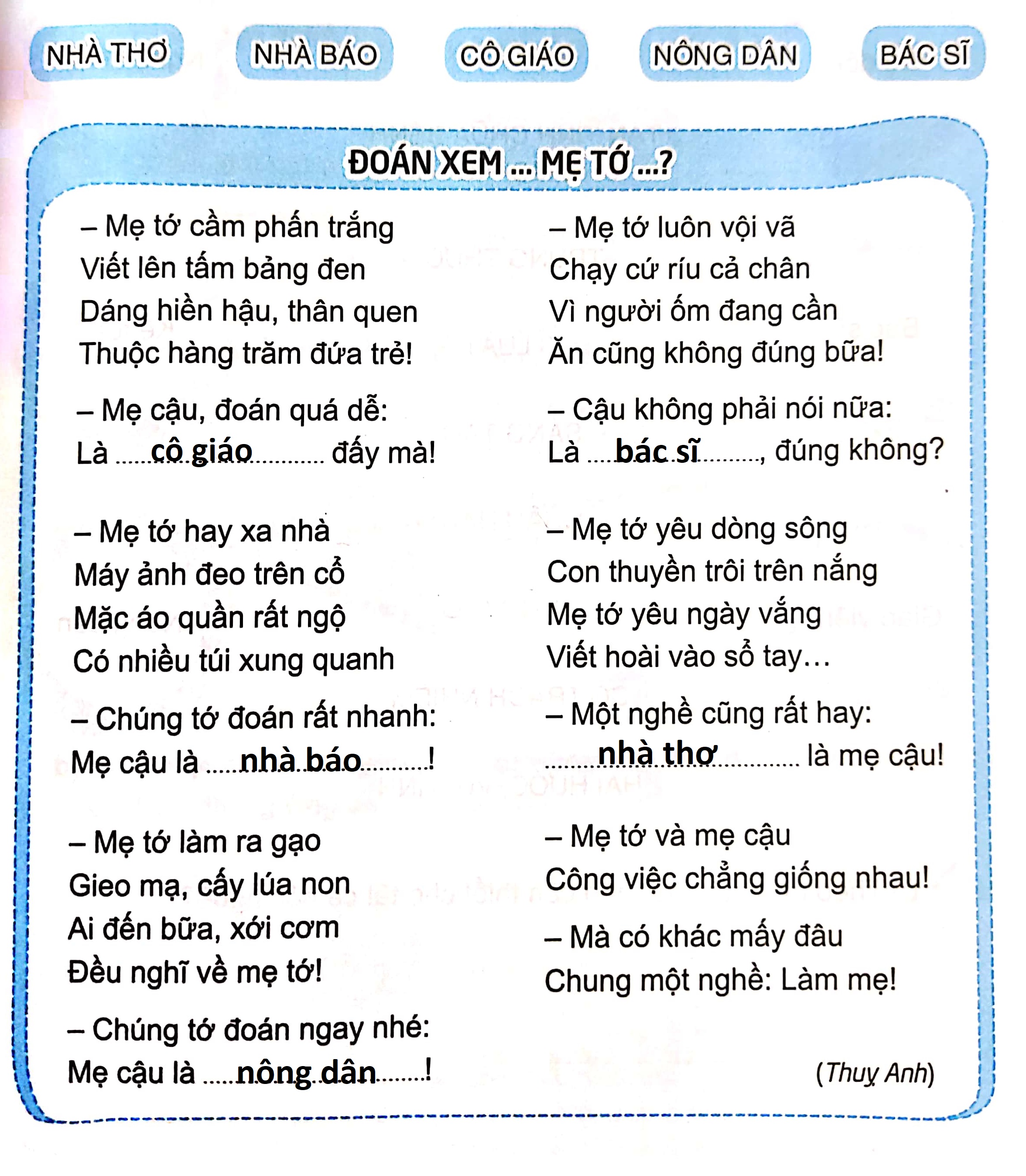 Đọc thơ và đoán nghề (điền vào chỗ trống):