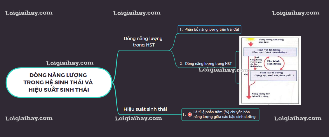 Sơ đồ tư duy Dòng năng lượng trong hệ sinh thái và hiệu suất sinh thái: