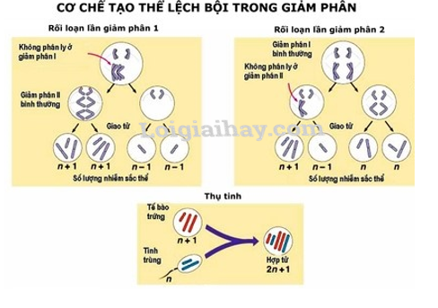 – Trong thụ tinh: Sự kết hợp của giao tử không bình thường với giao tử bình thường hoặc giữa các giao tử không bình thường với nhau sẽ tạo ra các đột biến lệch bội.