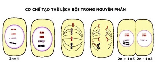 – Do sự phân ly không bình thường của các cặp NST trong nguyên phân hình thành tế bào lệch bội.