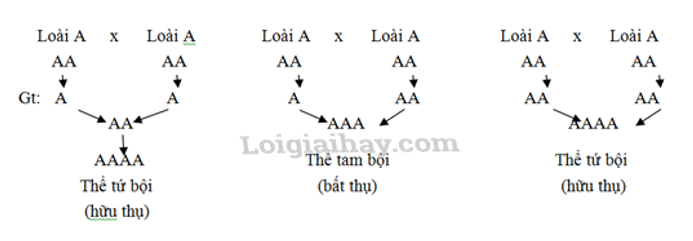 + Do trong quá trình giảm phân, bộ NST của tế bào không phân li, tạo thành giao tử chứa 2n. Qua thụ tinh sự kết hợp của các giao tử 2n này với nhau tạo thành thể tứ bội 4n, hay kết hợp với giao tử bình thường n sẽ tạo thể tam bội 3n.