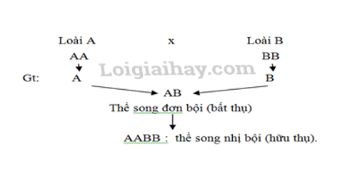 – Cơ chế phát sinh: Cơ chế hình thành thể dị đa bội là lai xa kết hợp với đa bội hóa tạo ra cây song nhị bội gồm 2 bộ NST của 2 loài đem lai.