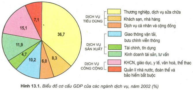 Dựa vào hình 13.1, hãy nêu cơ cấu ngành dịch vụ.